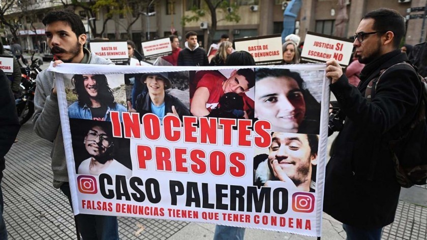 Fuera de los tribunales donde se desarrollaba el debate y junto a una veintena de familiares y amigos ambas reclamaban este mediodía exhibiendo pancartas y carteles con frases como "inocentes presos de Palermo"; "justicia sí, escrache no"; "presunción de inocencia, valor en decadencia" y "basta de falsas denuncias".